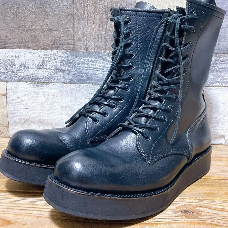 버팔로 밥스 롱 부츠 사이드 지퍼 천연 가죽 통굽 비브람 블랙
