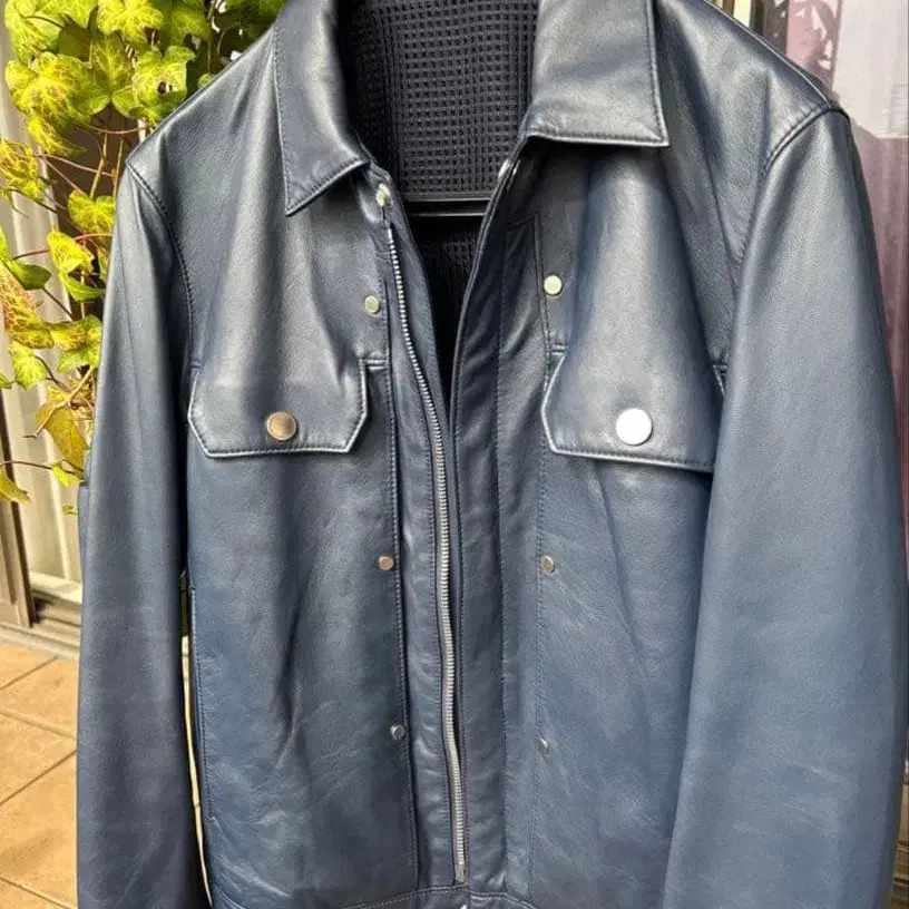 네이비 가죽 자켓