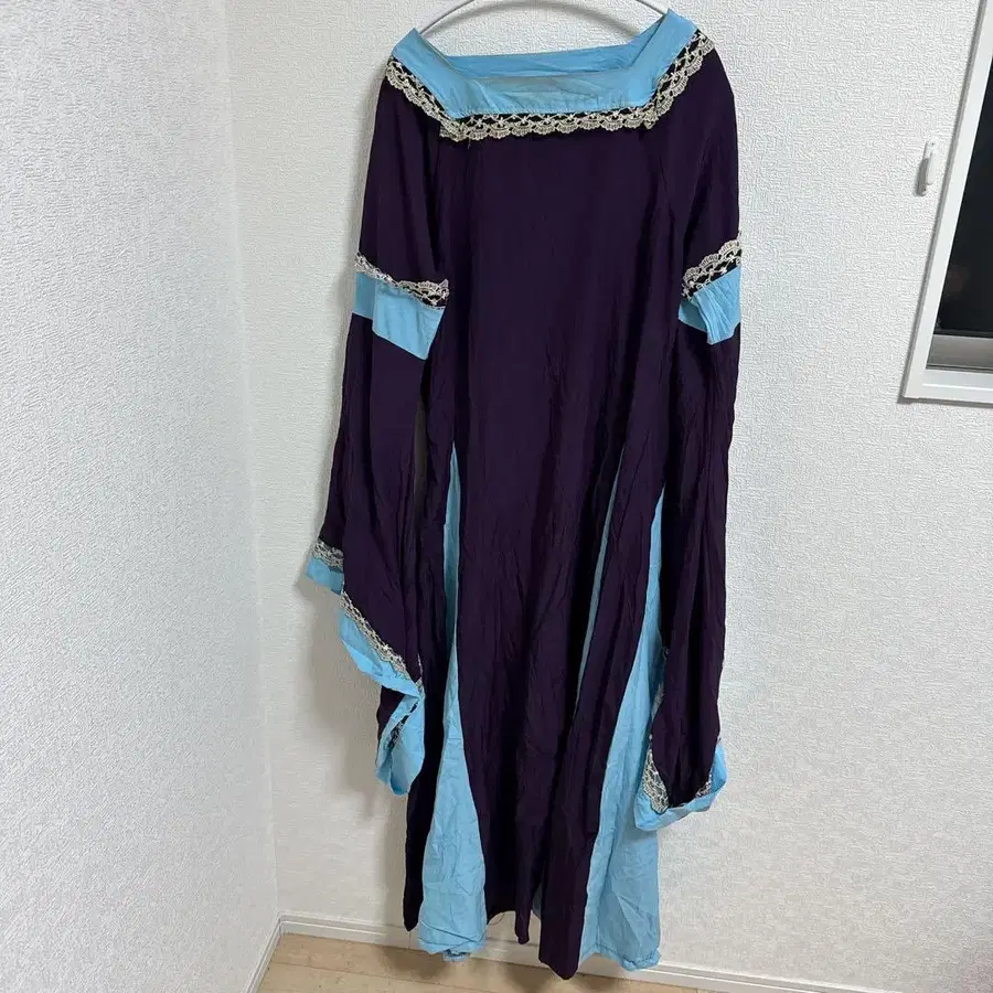 외국풍 레이스 장식 롱 드레스 보라색 스카이블루