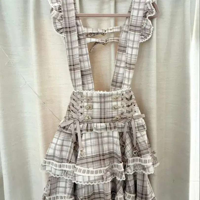 LIZLISA 사다리 리본 체크 티어드 치마바지