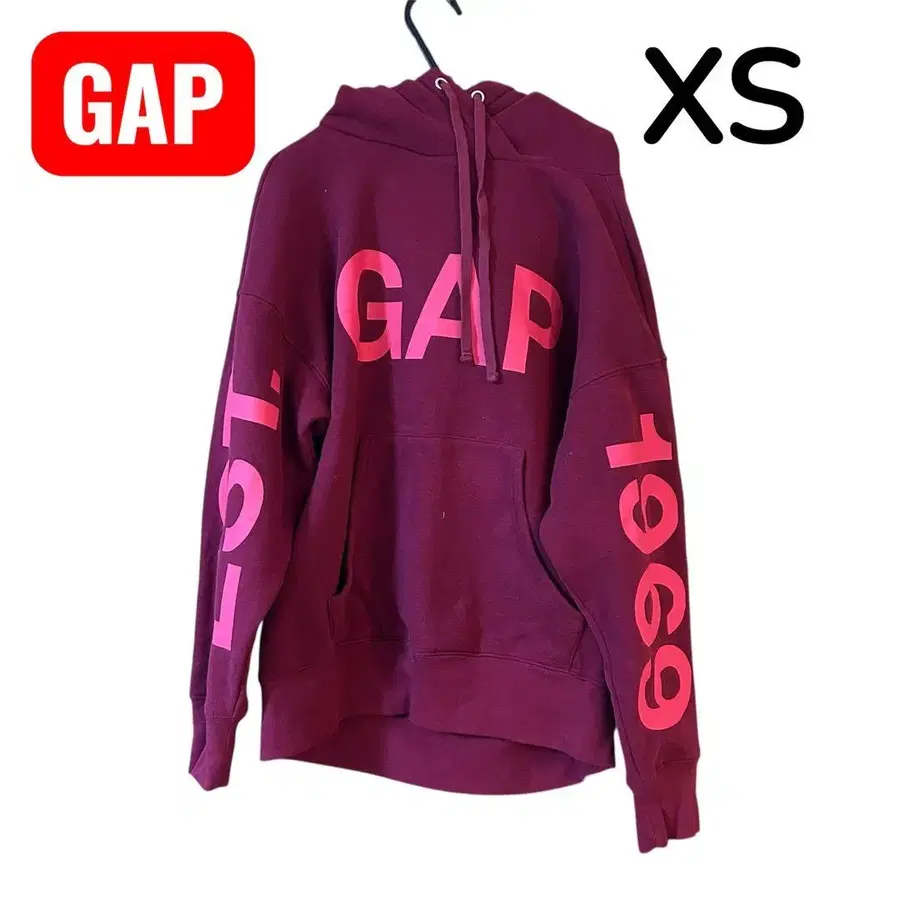 [ 레어 컬러 ] GAP 갭 로고 후드티 보르도 XS 사이즈
