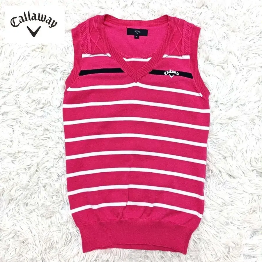 캘러웨이 니트 베스트 보더 핑크 여성용 M