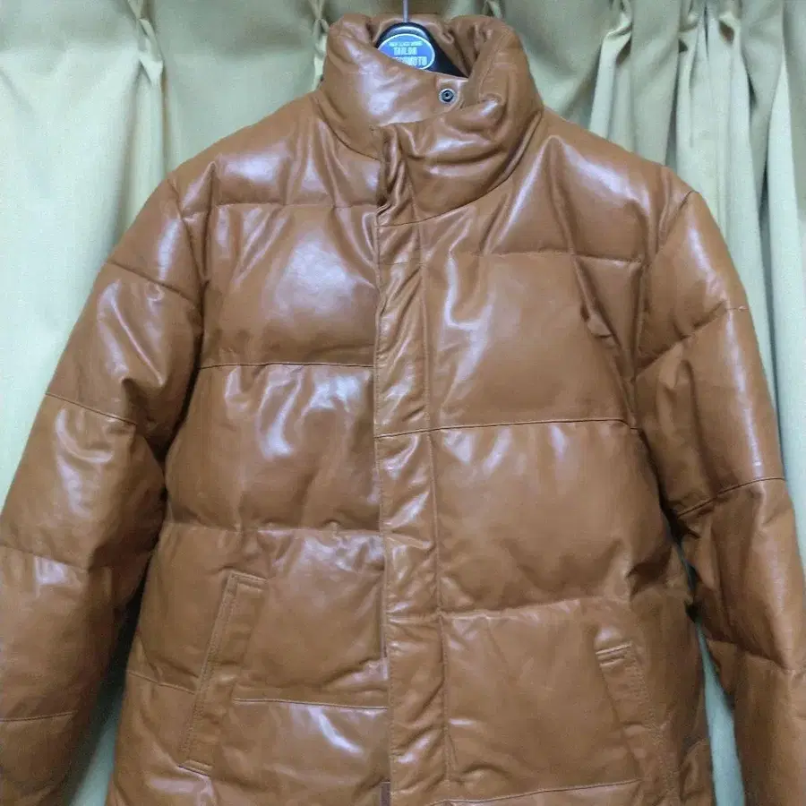 브라운 다운 자켓 소가죽 100%