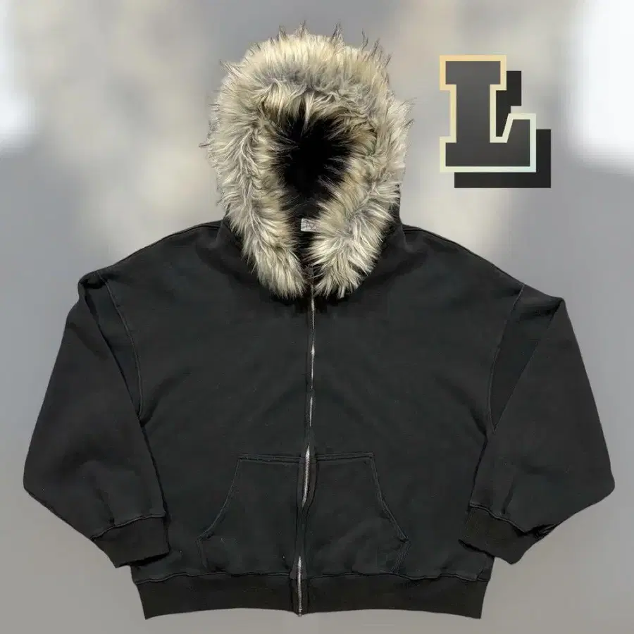 L 퍼 후드 집업 후드티 블랙 y2k 해외 스트릿 스케이터