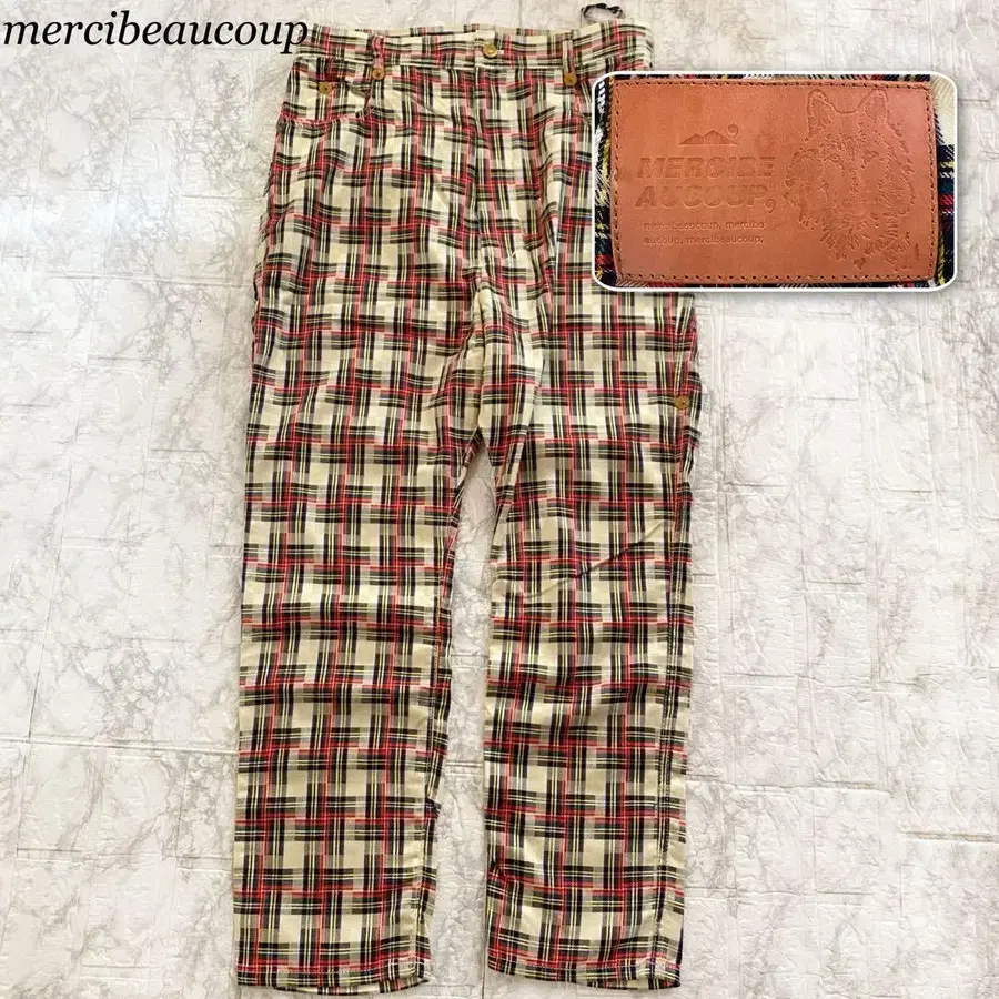 메르시보크 팬츠 사루엘 체크 가죽 올 패턴 사이즈 3 블록 절개