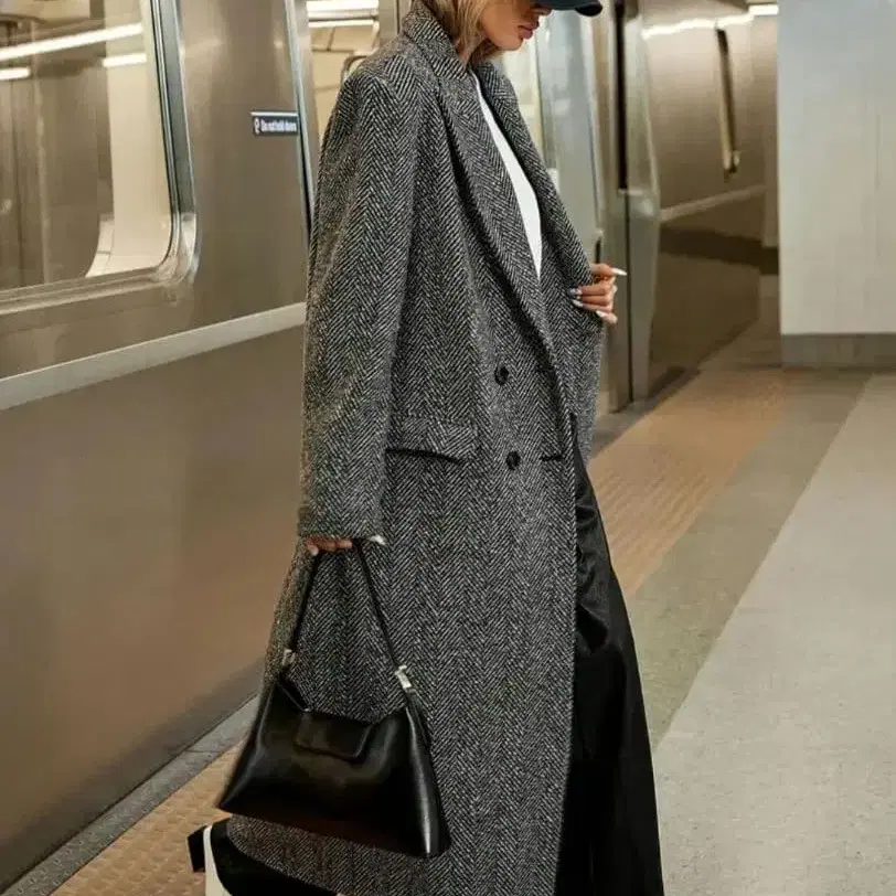 그레이 더블 브레스트 두꺼운 원단 롱 코트 XXXL 미사용 새상품