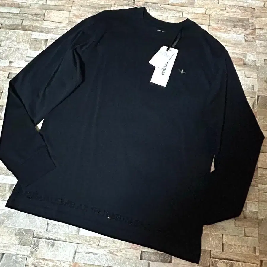 ■ 밑단에 브랜드 로고를 큐빅으로 디자인한 긴팔 티셔츠.