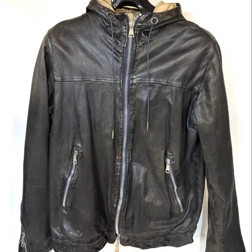 GLORIO BRATO 후드 부착 가죽 자켓 네이비