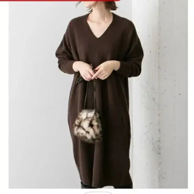 브라운 V넥 니트 롱 원피스
