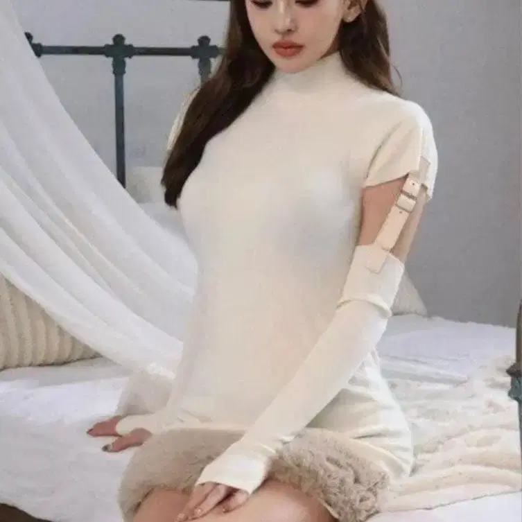 Randy Belted fur knit dress