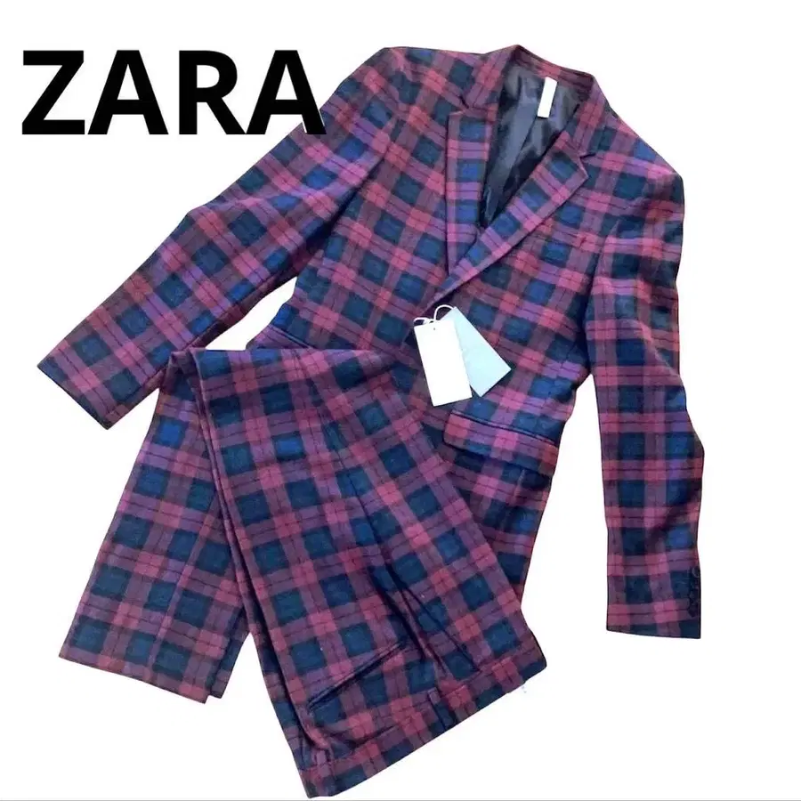 새상품 ZARA 셋업 수트 체크 자켓 수트 보르도