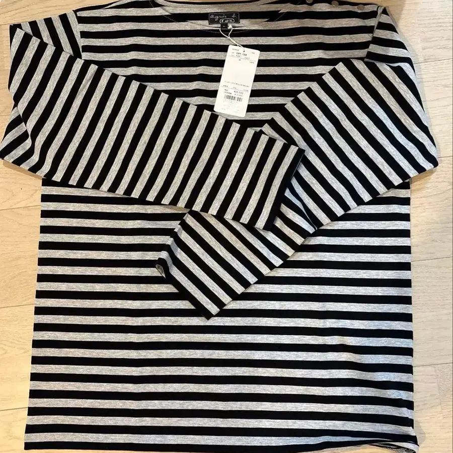 [ 미사용 새상품 ] 에네스베 보더 롱 T셔츠 그레이 x 블랙 L 사이즈
