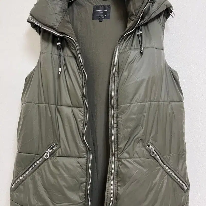ZARA 후드 부착 퀼팅 베스트 M 올리브 그린