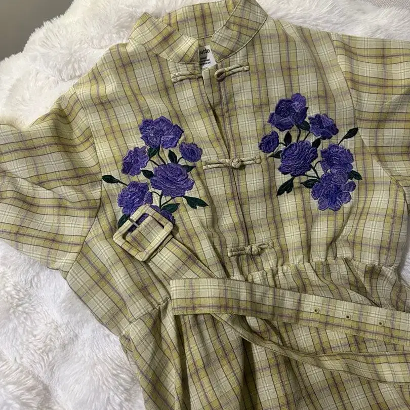 [ jouetie 쥬에티 ] 차이나풍 자수 체크 원피스 M jouetie (쥬에티)의 차이나 버튼 디자인이 귀여운 롱 원피스입니다. 그린 계열의 체크 원단에, 가슴 부분의 퍼플 플라워 자수가 돋보이는 아이템입니다. 허리 절개로 실루엣도 예쁩니다. 사이드 버튼 사양으로, 적당한 개성이 있으면서도 평소 사용하기 쉬운 디자인입니다. ■ 사이즈: M ■ 색상: 그린 계열 체크 ■ 소재: 본체: 폴리에스테르 91%, 레이온 9% 자수 부분: 폴리에스테르 100% ■ 정가: ¥9900 ■ 상태: 눈에 띄는 얼룩이나 데미지 없이 전체적으로 깨끗한 상태입니다. ※ 중고품이므로, 세세한 사용감은 양해 부탁드립니다. 차이나풍 디자인, 자수 원피스, 레트로 개성파 코디를 좋아하시는 분께 추천합니다. 즉시 구매 OK입니다 ◎