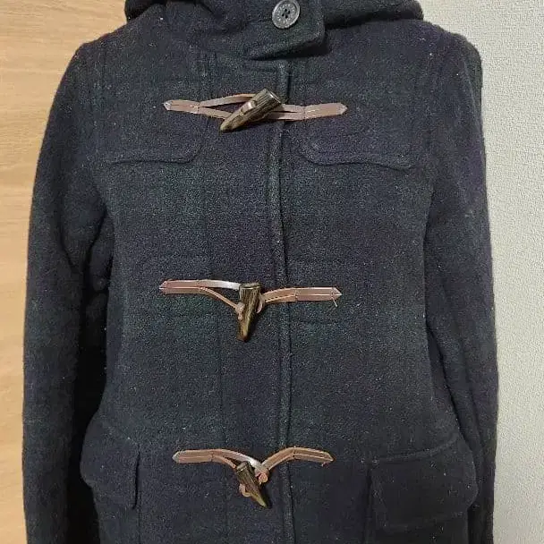 저널 스탠다드 블랙워치 패턴 더플 코트 후드 부착