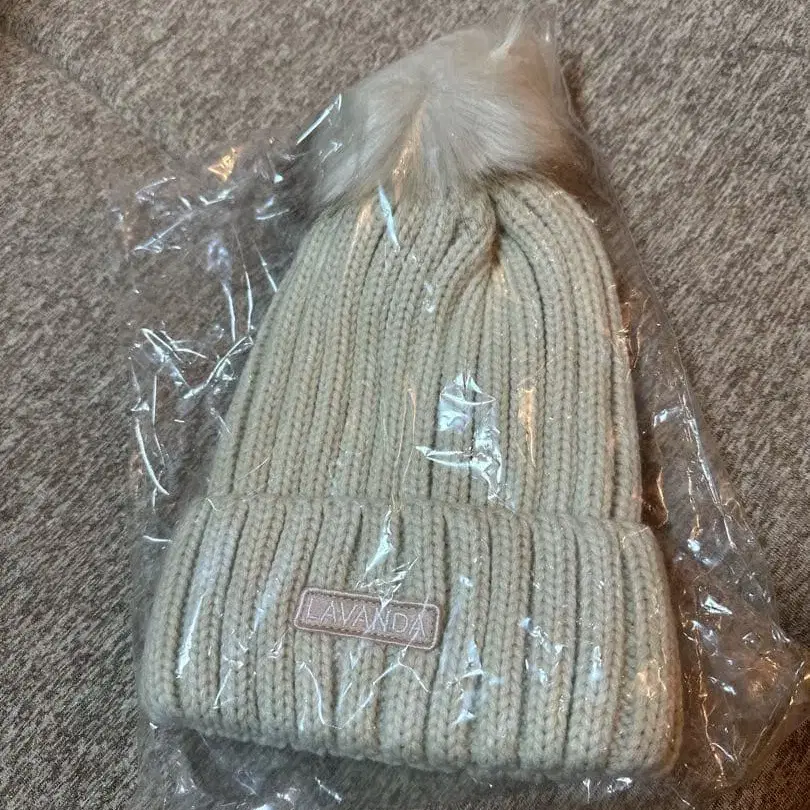 LAVANDA 퍼 니트 모자 베이지