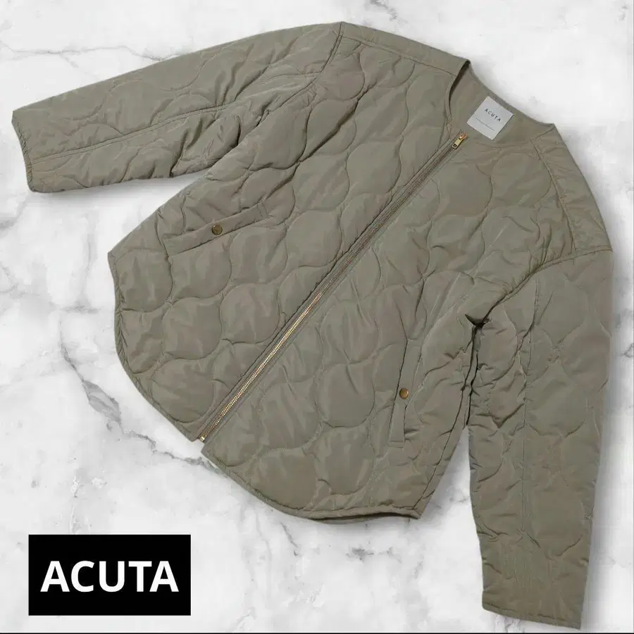 ACUTA 올리브 그린 노카라 퀼팅 자켓
