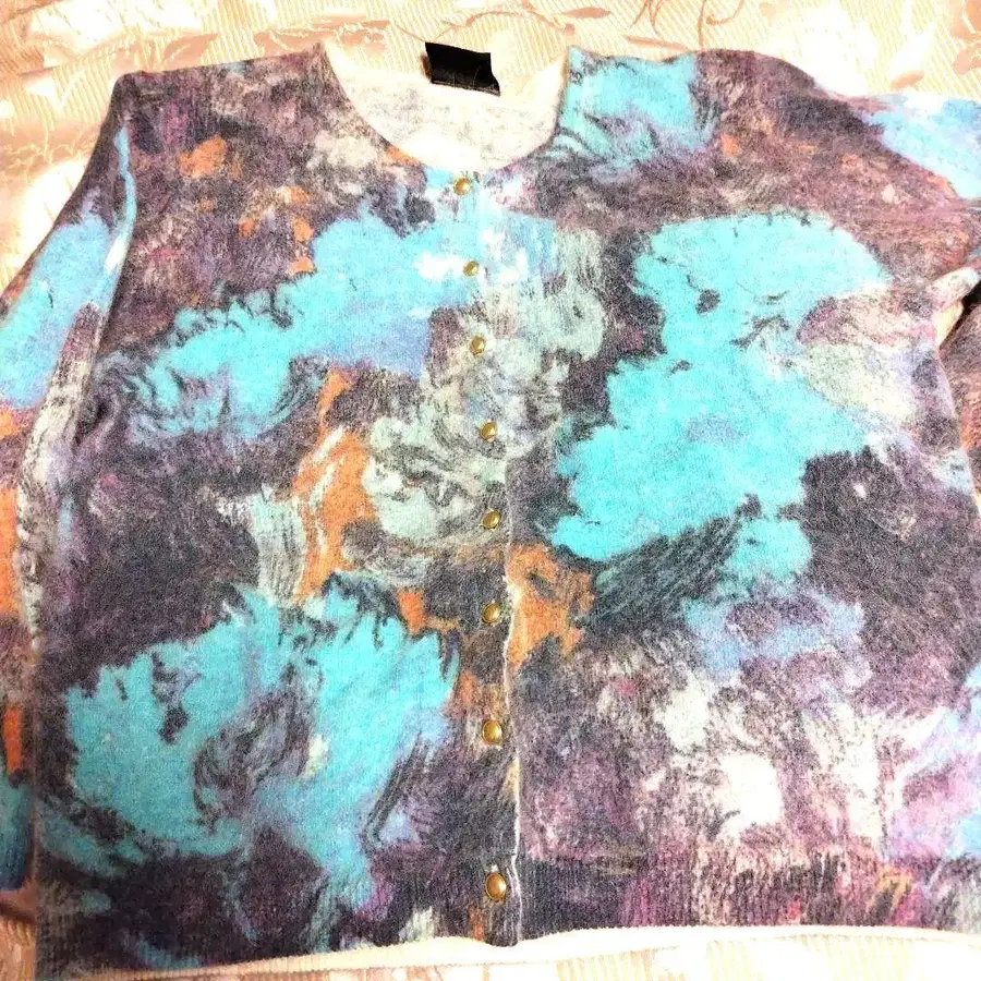 블루 색상의 추상 패턴 디자인 긴팔 가디건