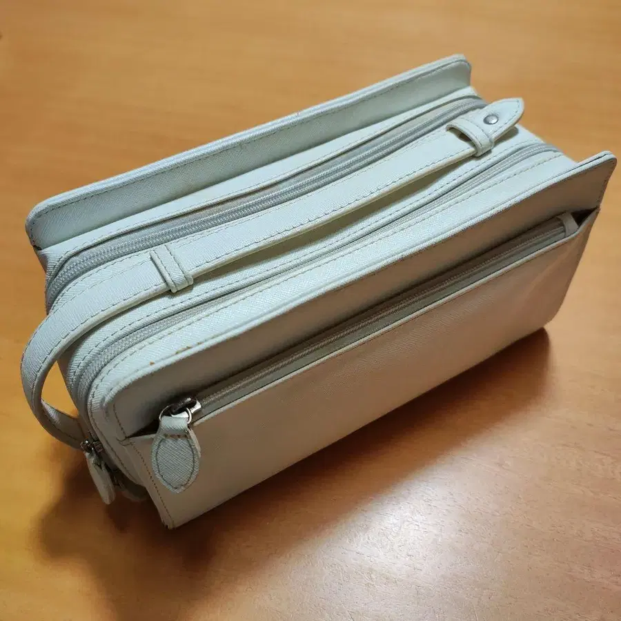화이트 합성 피혁 세컨드 바디 백 더블 지퍼