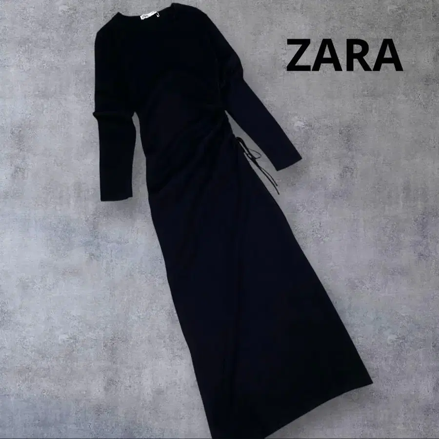 새상품급! ZARA 사이드 개더 핏 리브 원피스 BLACK