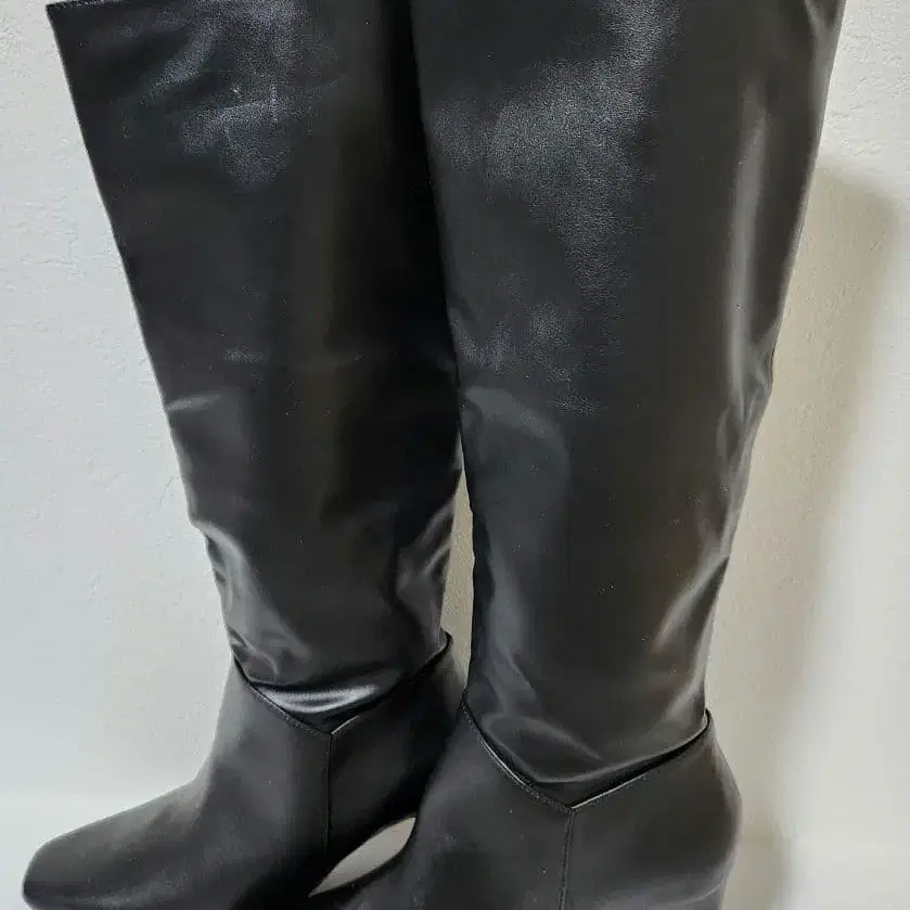 RANDA 롱 부츠 블랙 와이드 힐 스퀘어토 M 사이즈