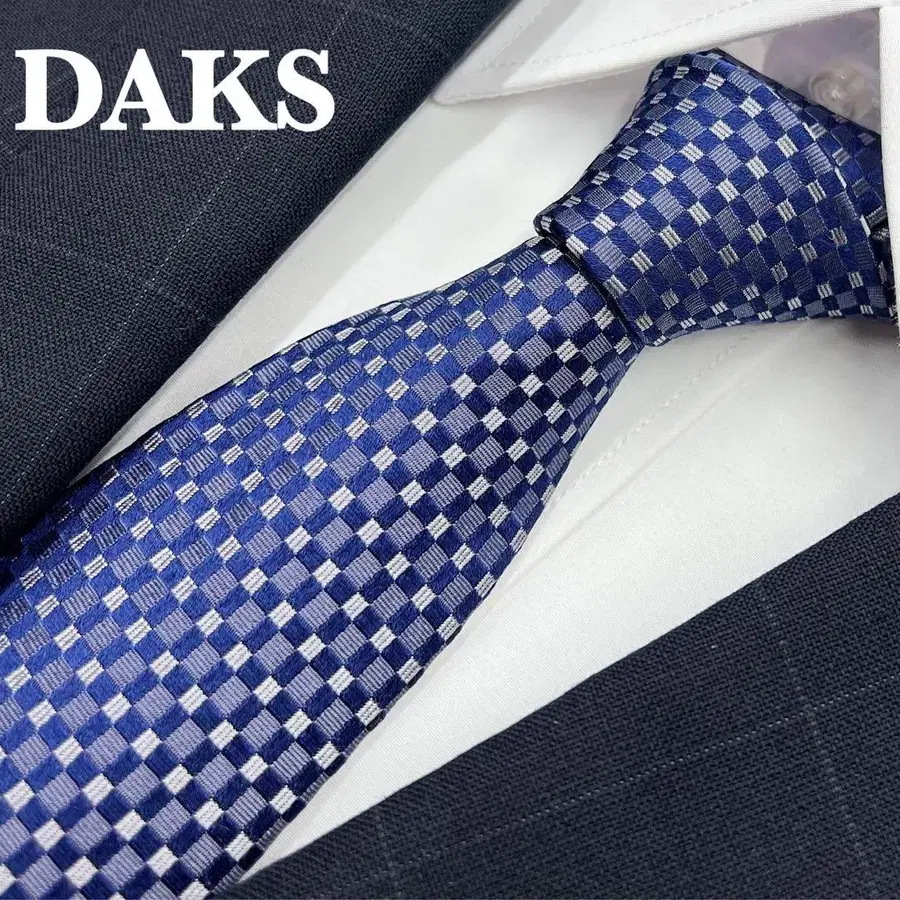 [새상품급] 닥스 넥타이 블루 계열 체크 심플 고급 실크
