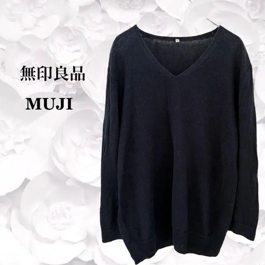 무인양품 니트 스웨터 L 사이즈 네이비 린넨 V넥 얇은 소재