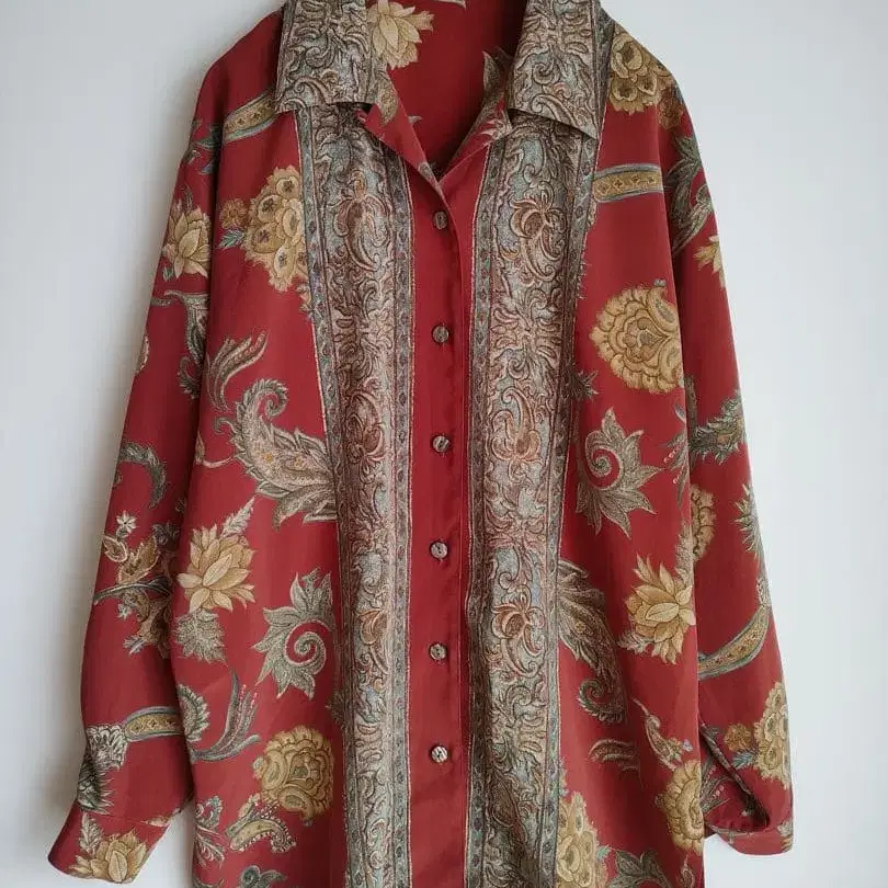 스카프 패턴 셔츠 에스닉 빈티지 빈티지 홍차 셔츠