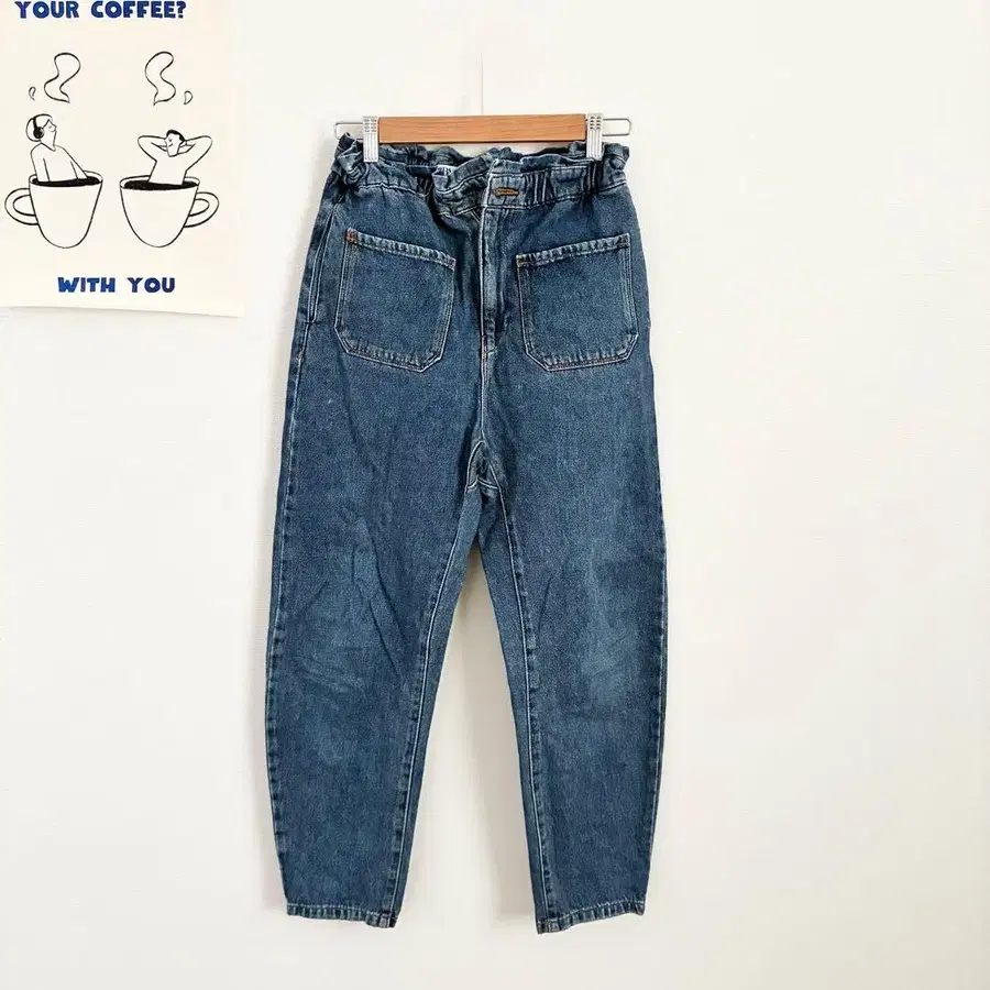 자라/ZARA 하이웨스트 데님 팬츠 허리밴딩 캐주얼
