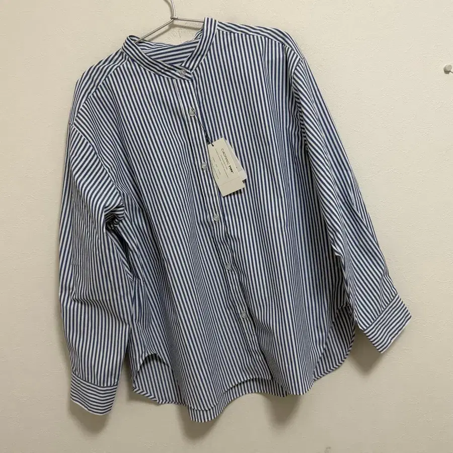 [ 자외선 차단 간편한 관리 ] 볼륨 슬리브 스트라이프 밴드 카라 셔츠