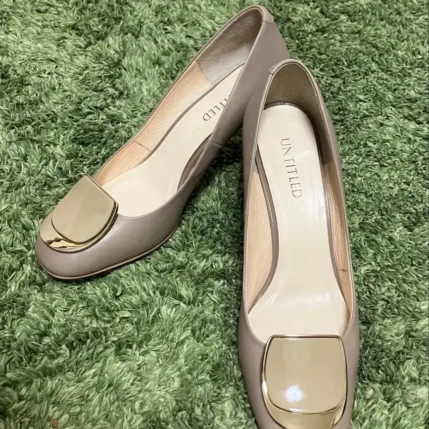 UNTITLED 베이지 펌프스 골드 장식