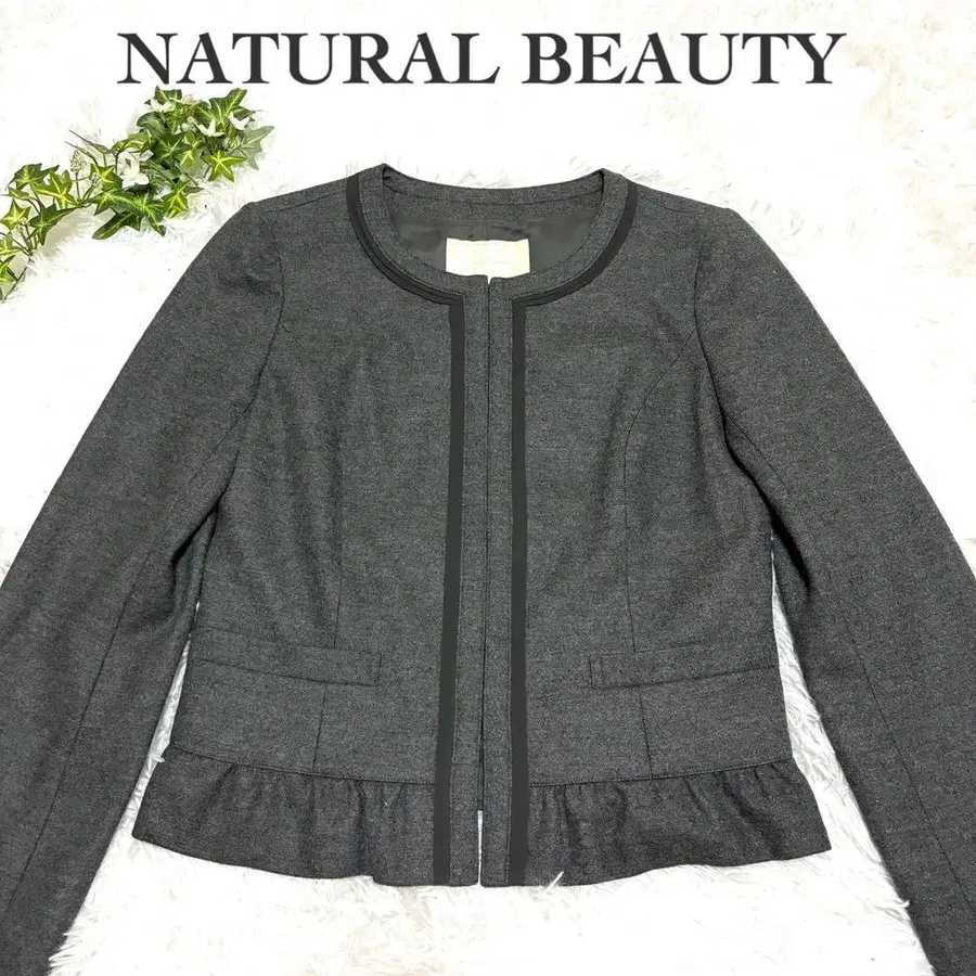내추럴 뷰티 노카라 자켓 그레이 블랙 울 38