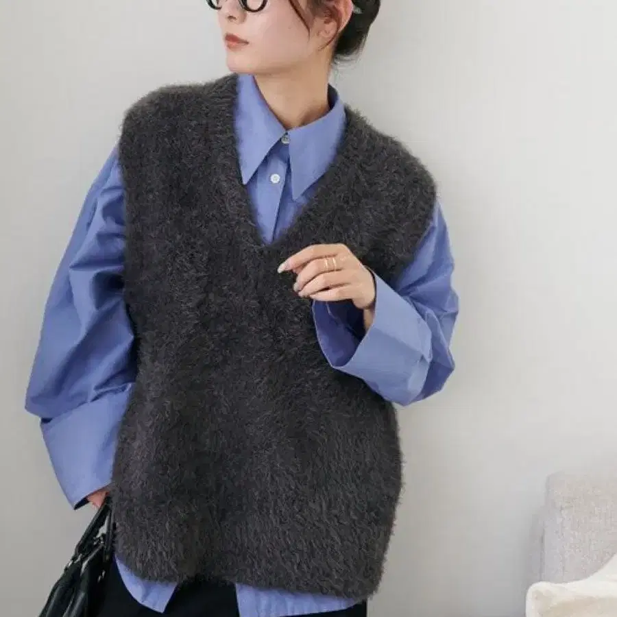 디스코트 V넥 퍼 베스트 차콜 그레이