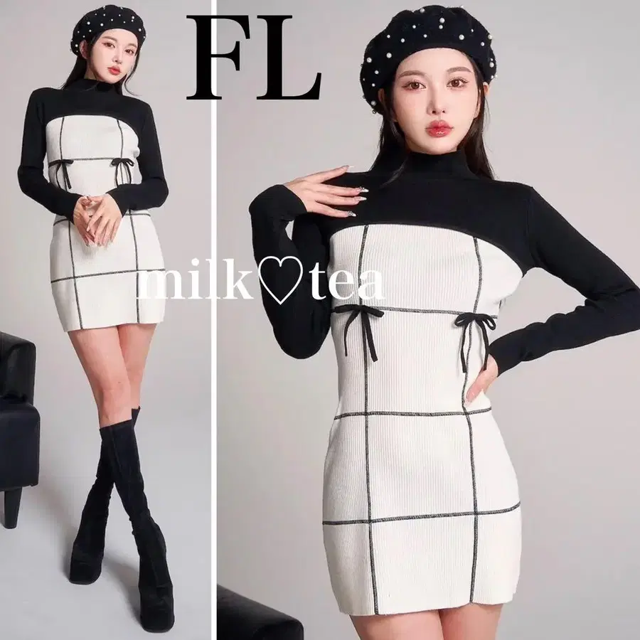 택 포함 새상품 다리치 도킹 리본 디자인 니트 미니 원피스 화이트 FL