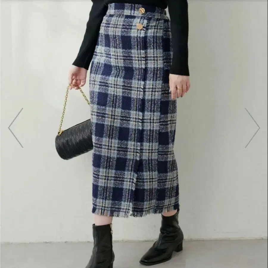 natural couture 랩 스타일 프린지 체크 타이트 스커트