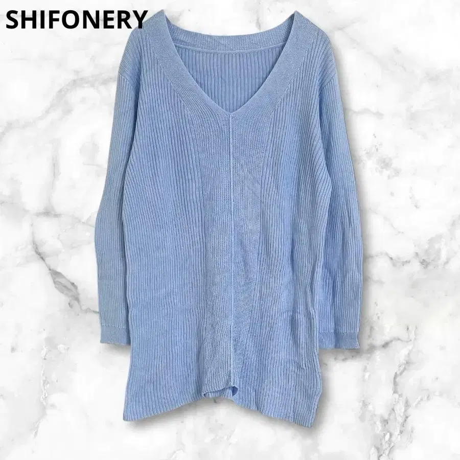 라이트 블루 V넥 긴팔 니트 얇은 소재 스웨터 M 코튼 혼방 심플 무지