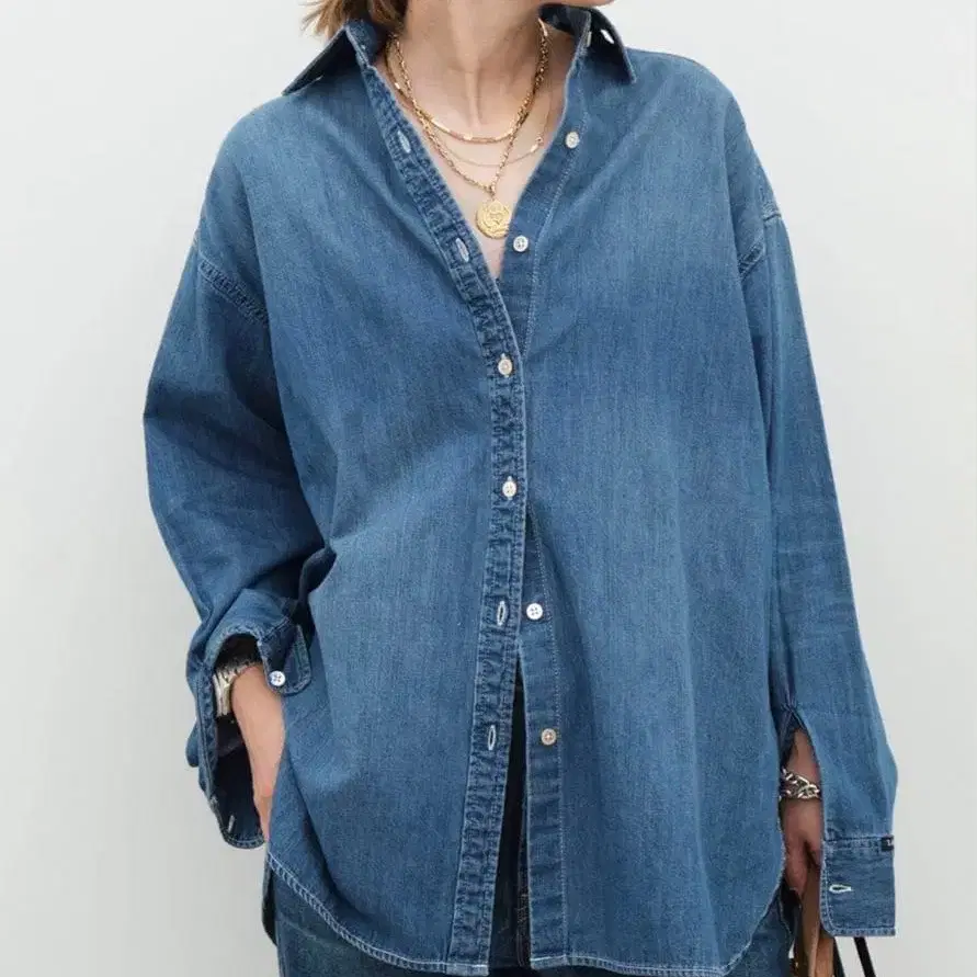 성인 여성의 캐주얼 코디를 아름답게 보이게 하는 데님 셔츠.
