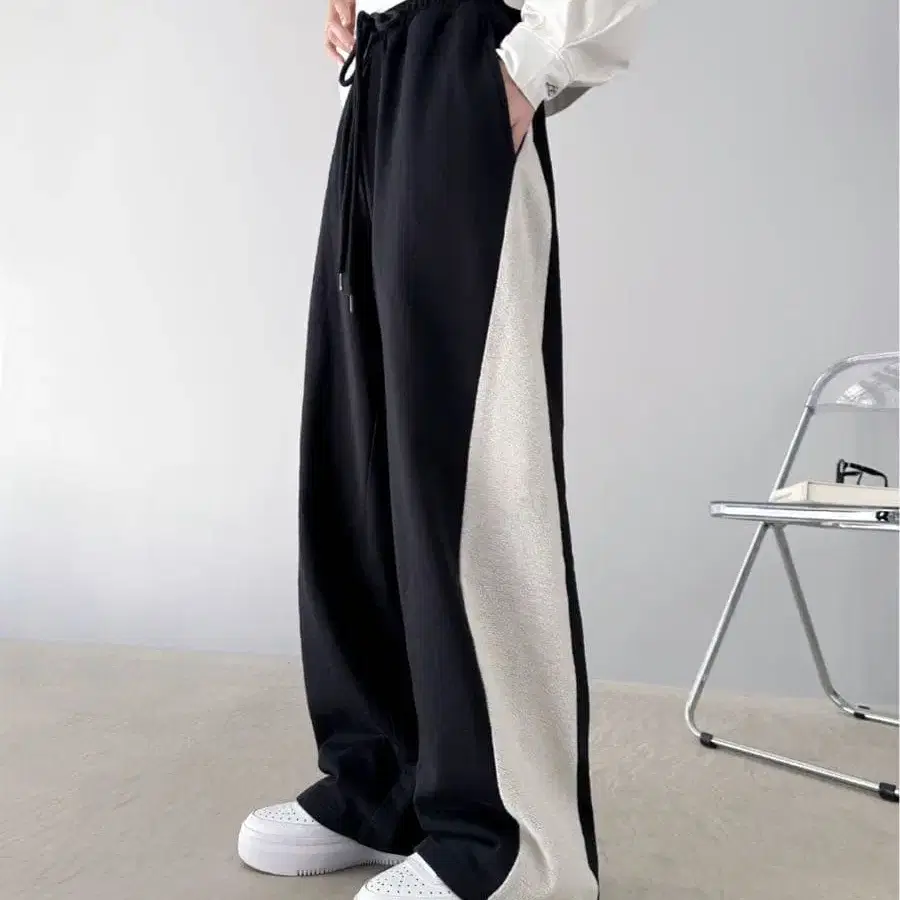 사이드 절개가 시선을 사로잡는 디자인 스웨트 팬츠.