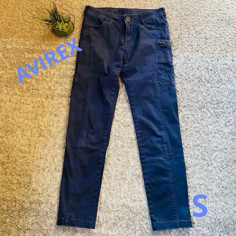 [ AVIREX ] 여성용 S 스트레치 스키니 팬츠 네이비 카모 패턴