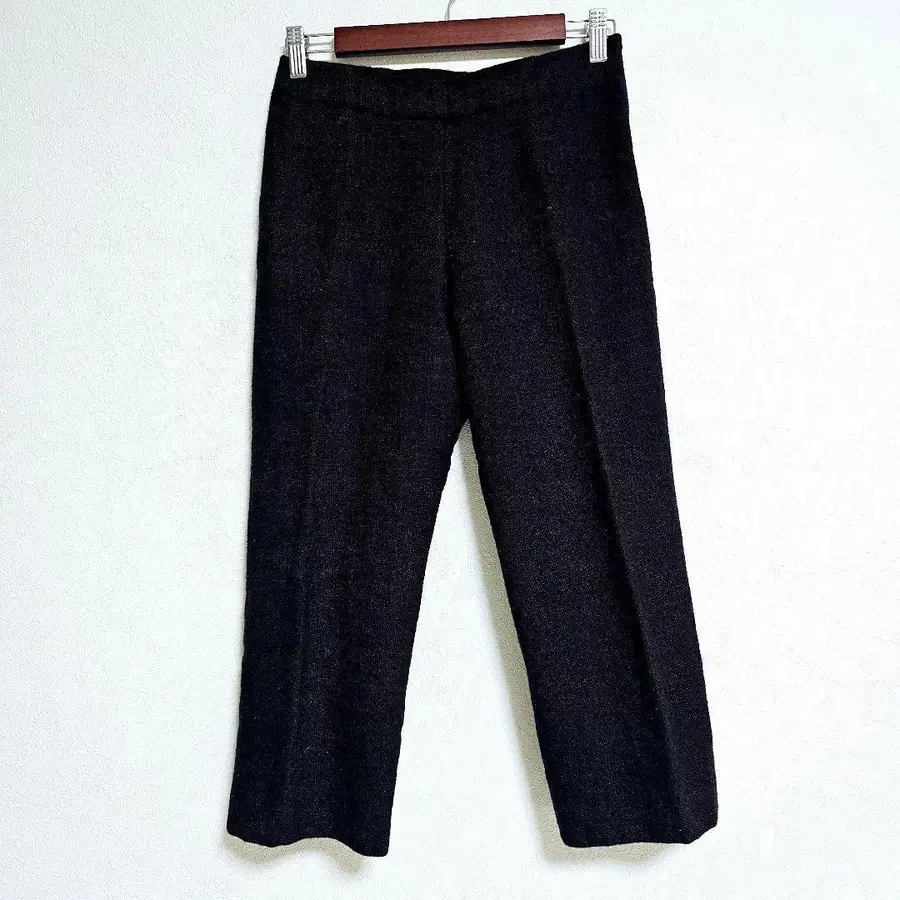 다크 브라운 울 혼방 크롭 와이드 팬츠