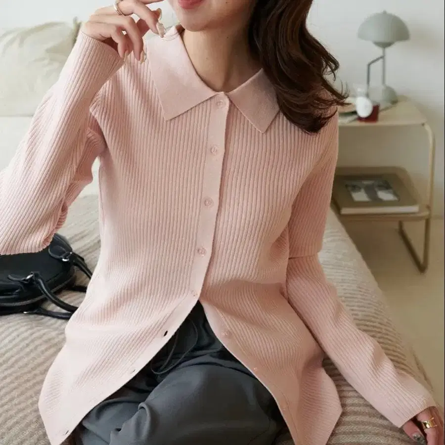 쫄깃쫄깃 리브 카라 부착 앞 버튼 풀오버