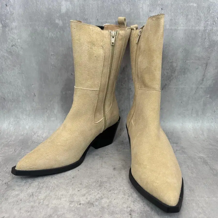 [ 미사용 새상품 ] 본트레 사이드 고어 부츠 포인티드 베이지 스웨이드