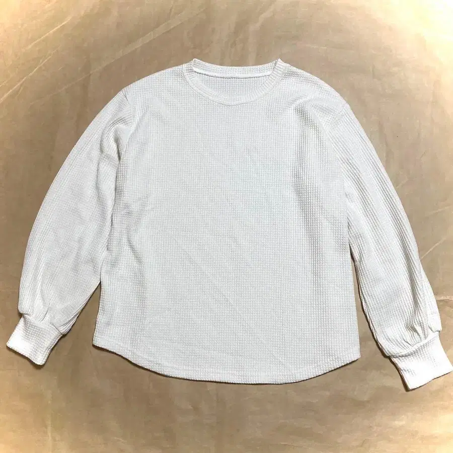 화이트 긴팔 티셔츠 프리 사이즈 와플 원단
