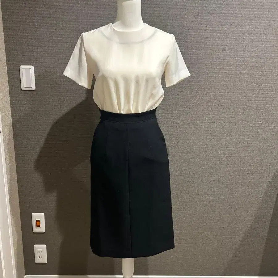 YOKO CHAN 반팔 무릎 기장 원피스 화이트/블랙