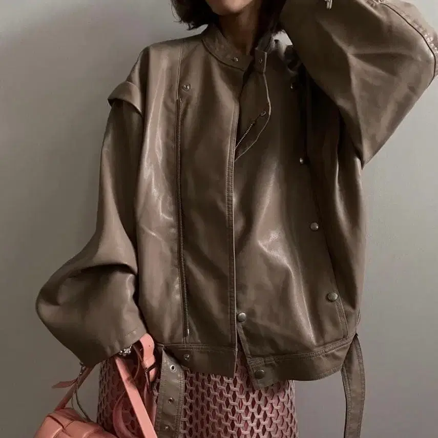 Ameri RETRO FAKE LEATHER JACKET 베이지