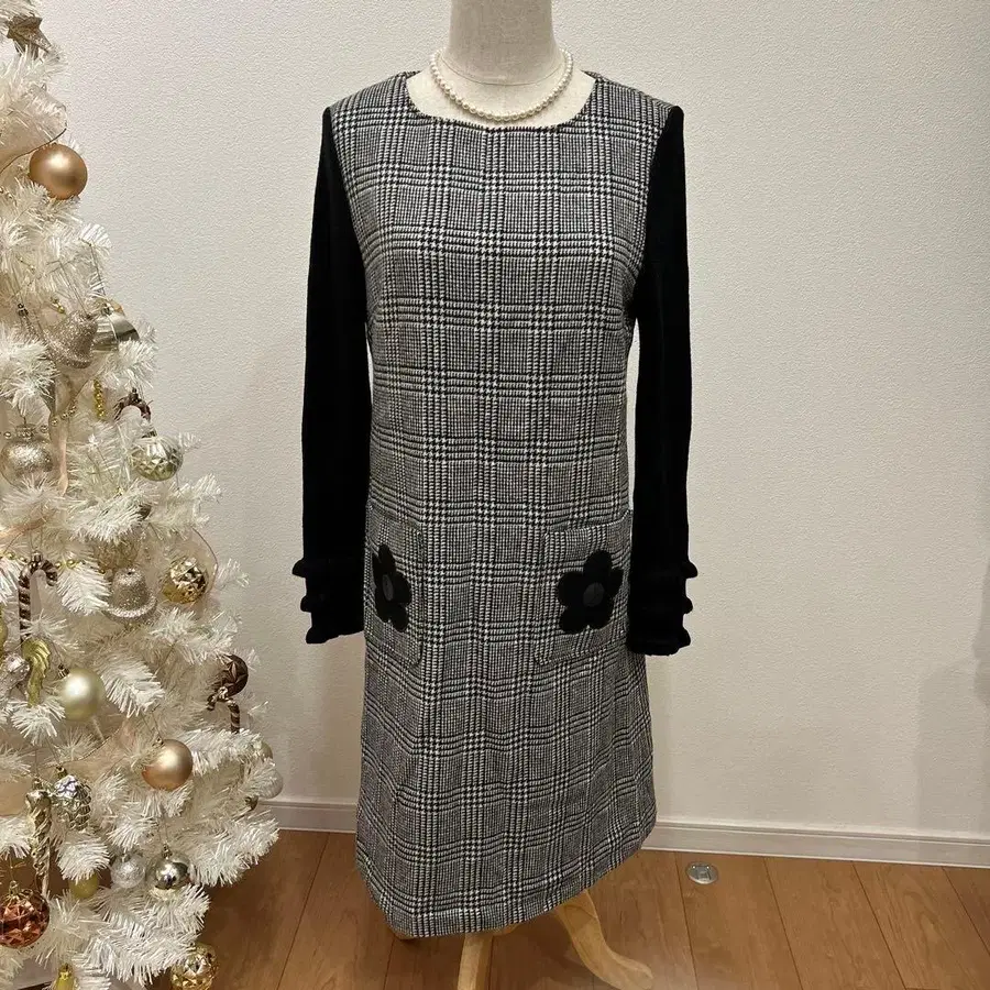 갤러리 비스콘티 하운드투스 니트 원피스 소매 절개 블랙 화이트 꽃