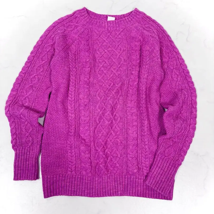 선명한 핑크 컬러가 눈길을 끄는 코튼 니트입니다.