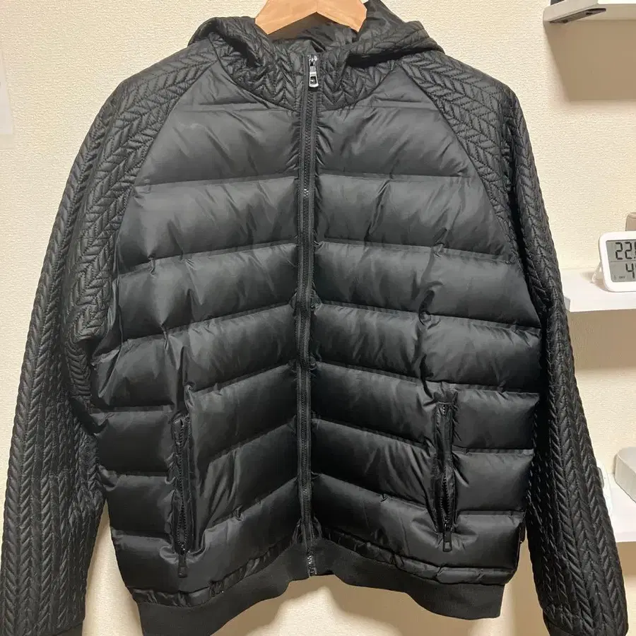 후드 부착 블랙 다운 자켓
