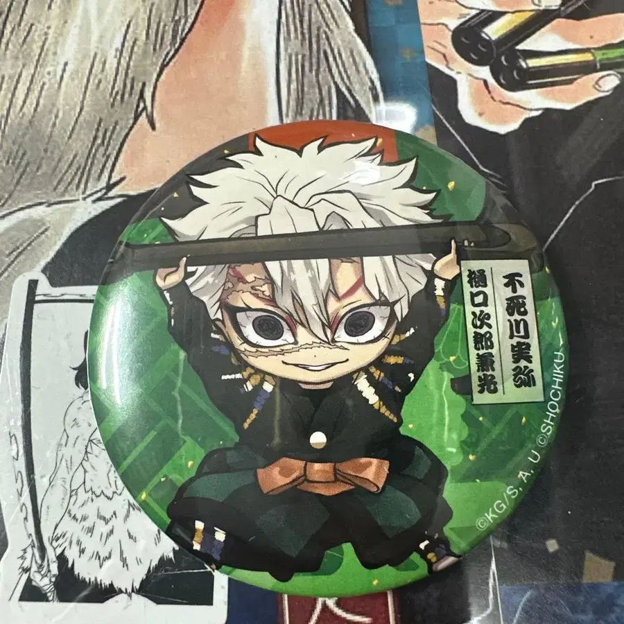 귀멸의 칼날 히구치 지로카네미츠 콜라보 캔뱃지 시나즈가와 사네미
