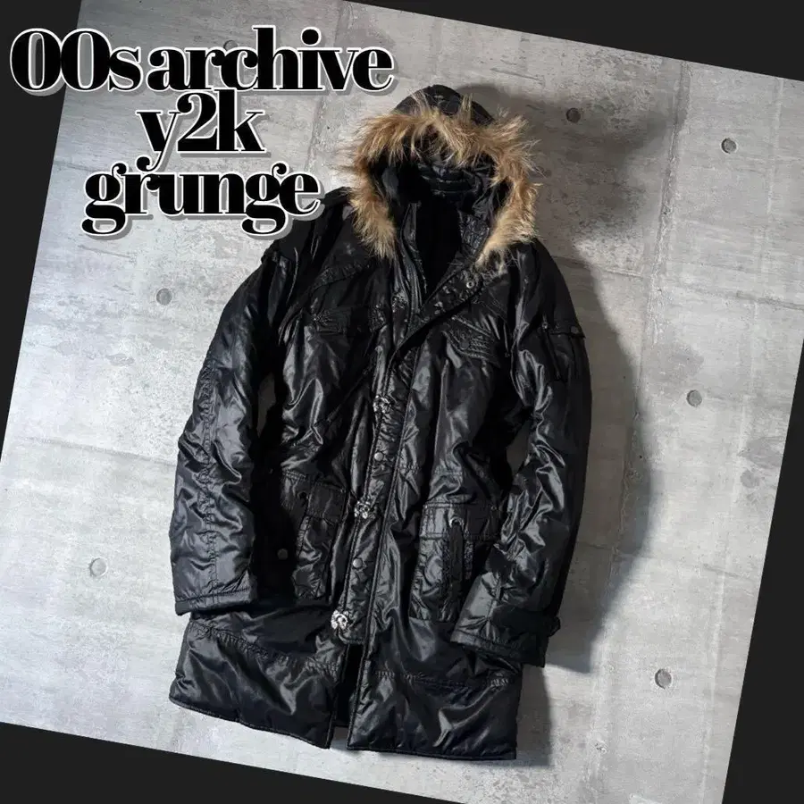 자동 번역되었어요. 원문보기00s 아카이브 퍼 다운 자켓 파이어 맨 버클 금장 장식 기믹 y2k 오피움 재패니즈 라벨